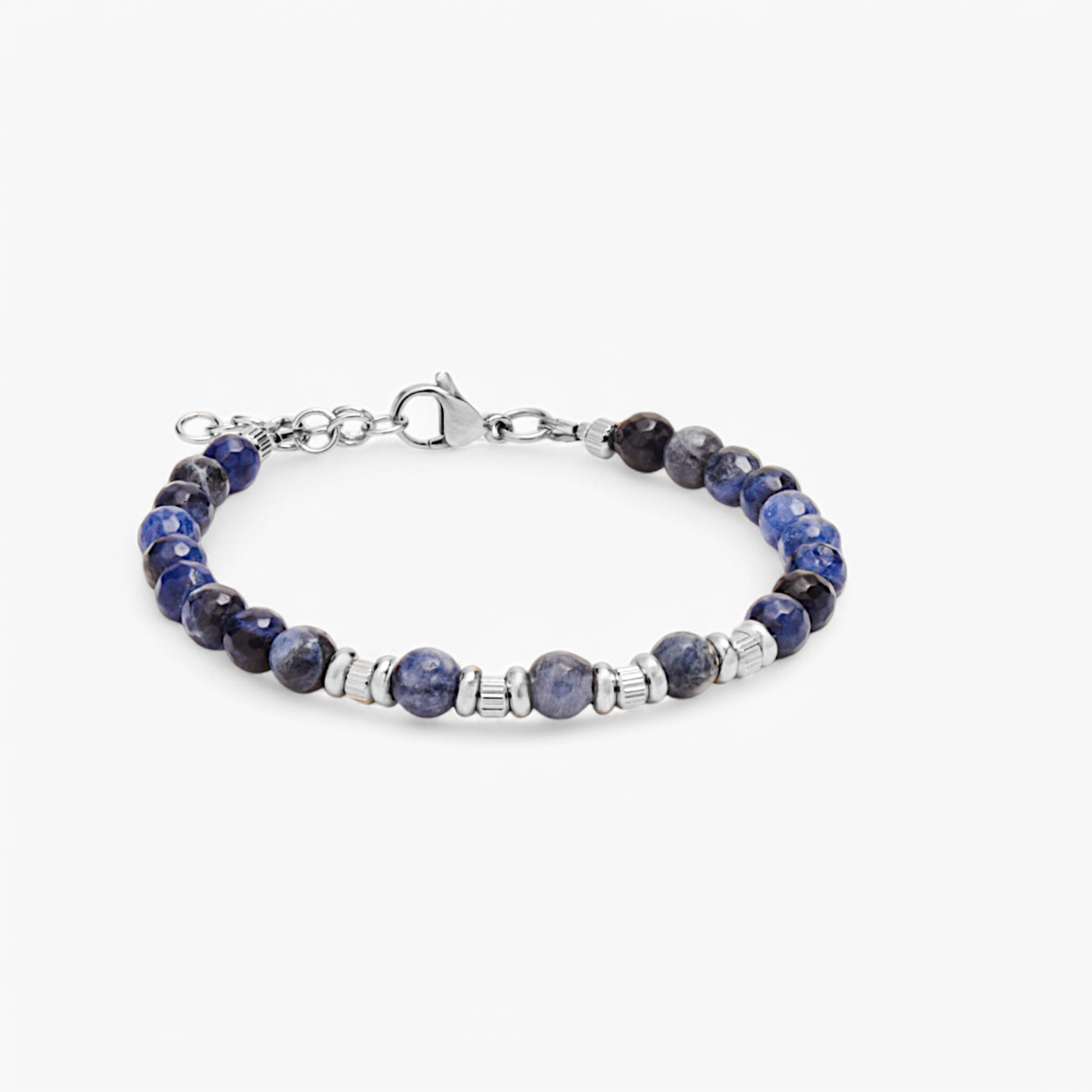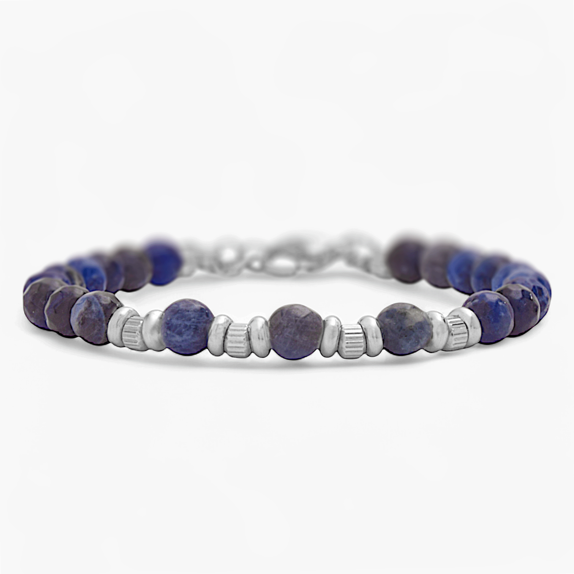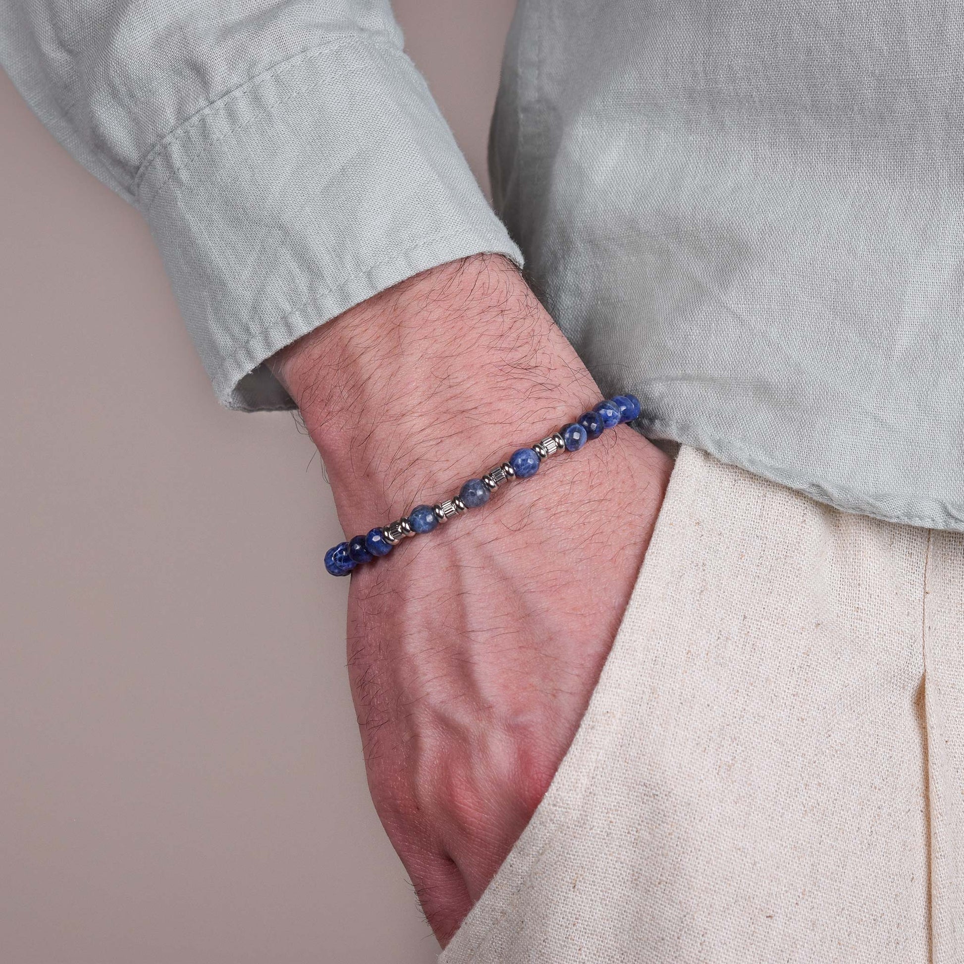 The sodalite men's bracelet is a unique jewel that combines elegance and meaning, handmade with high quality natural stones. Sodalite, with its characteristic blue and white shades, makes each bracelet a distinctive piece, ideal for the man looking for an accessory that expresses serenity and strength.