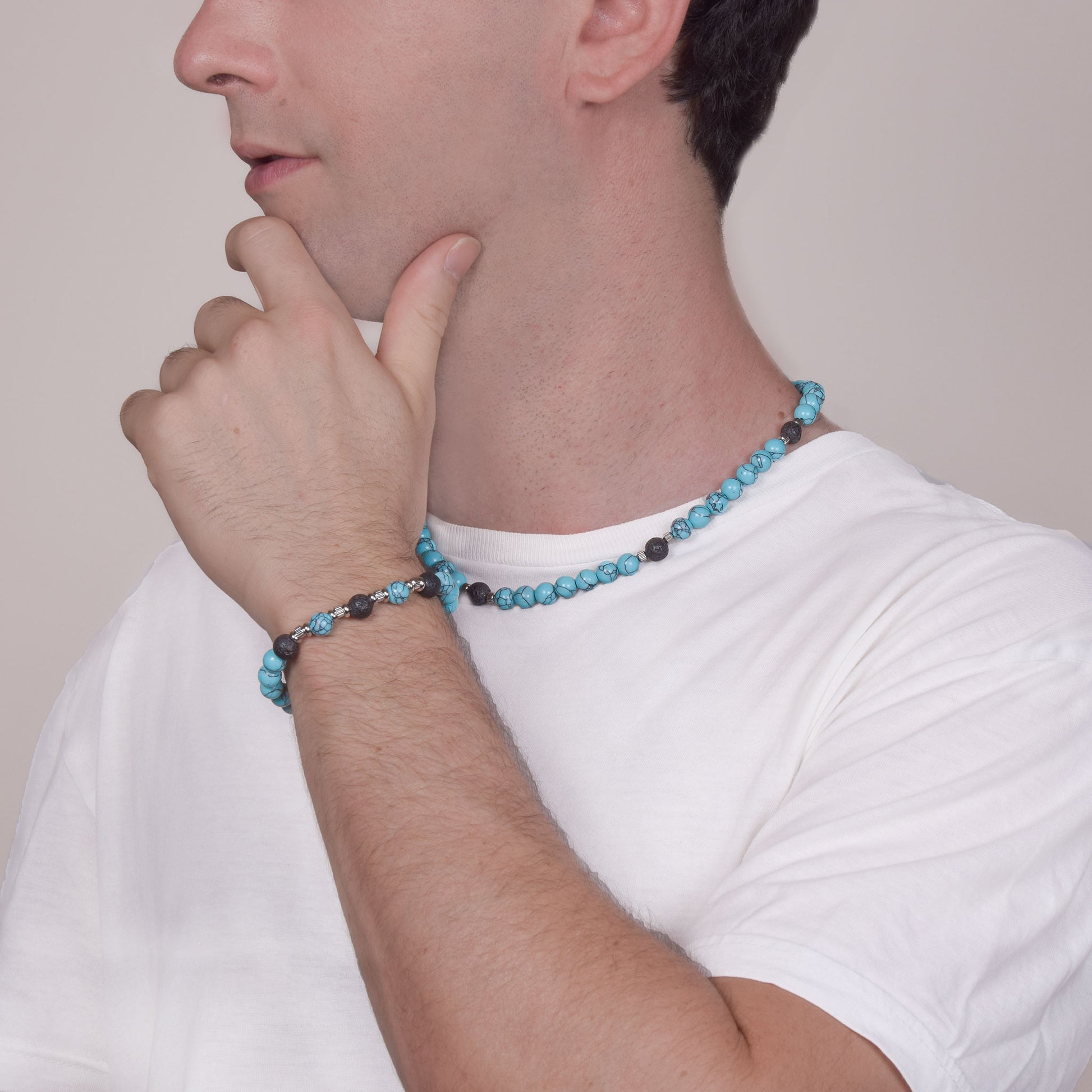 Turquoise and Lava Stone Bracelet – Masculine Style and Natural Energy for the Authentic Man