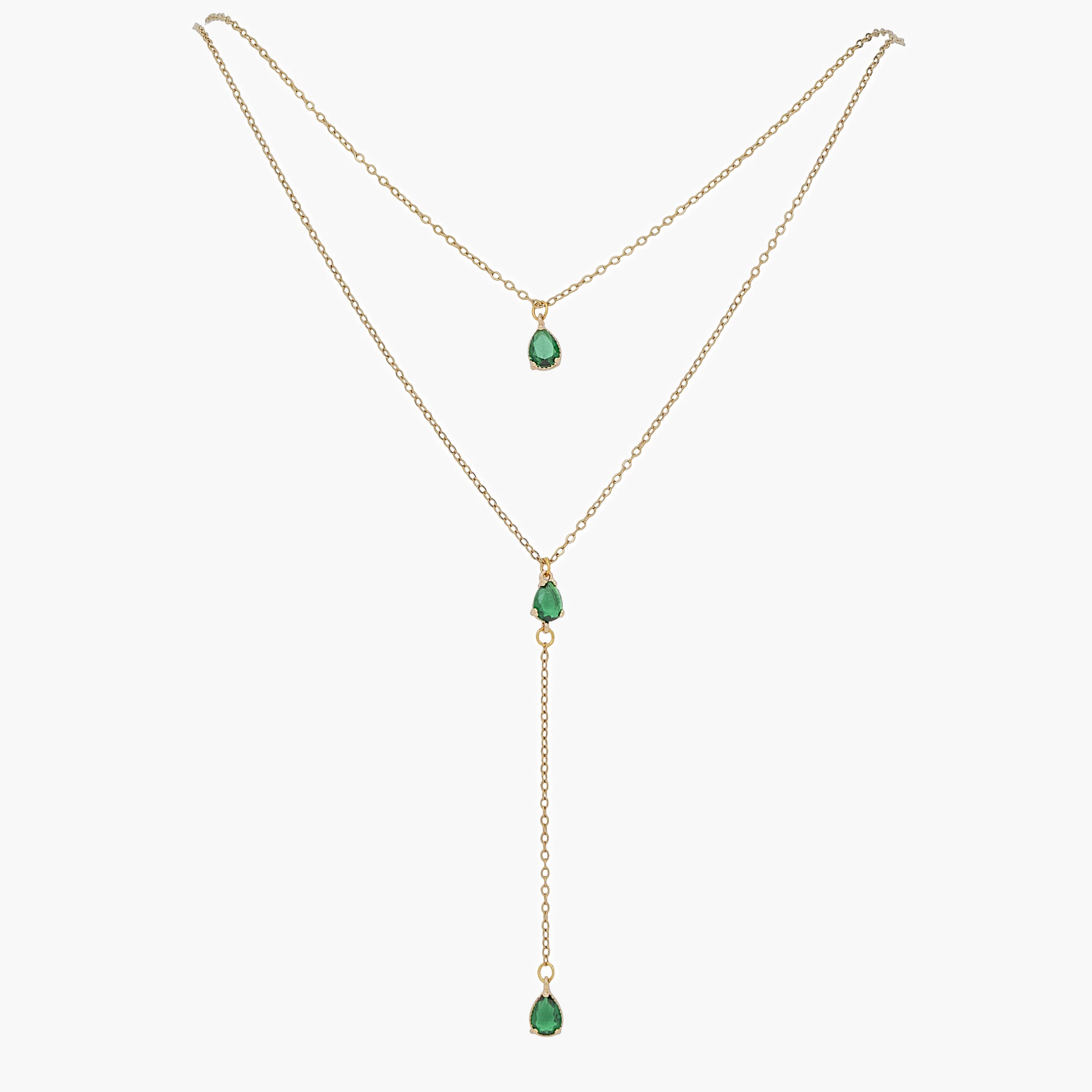 Women's Gold-Plated Steel Necklace with Green Zircon Pendants