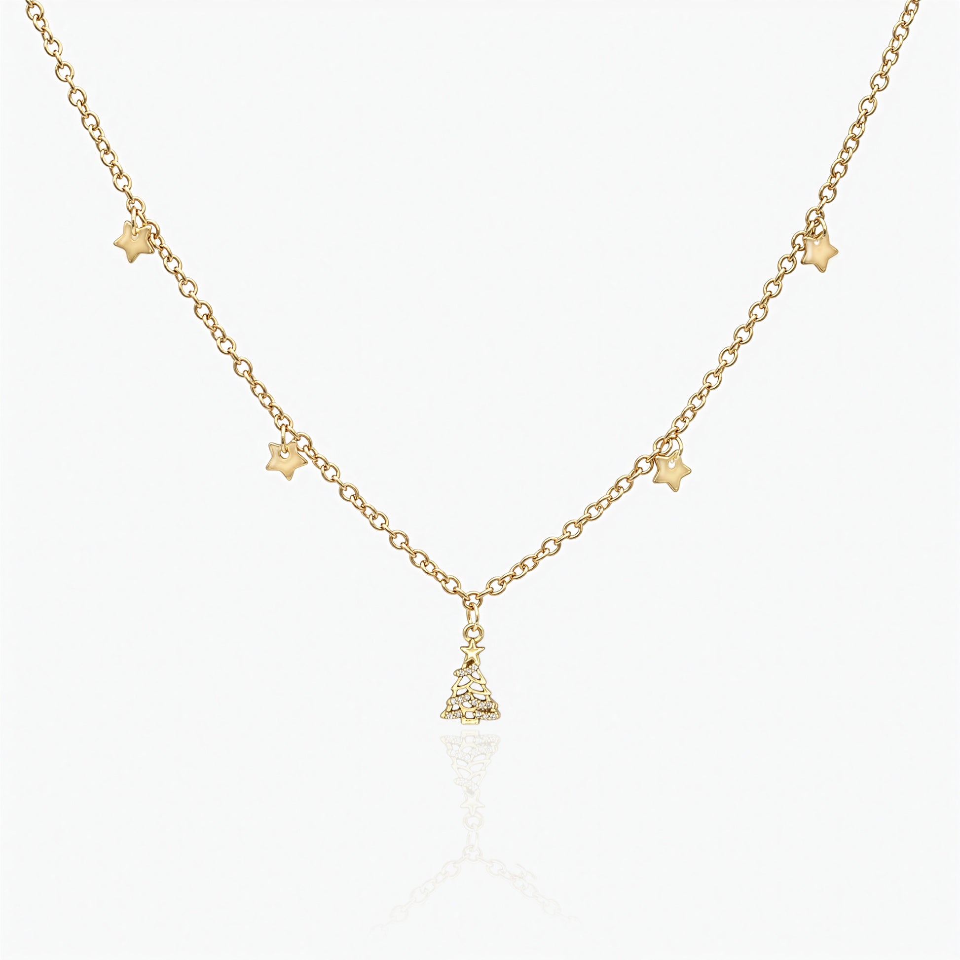 Women's Christmas Tree Necklace with Zircons and Stars