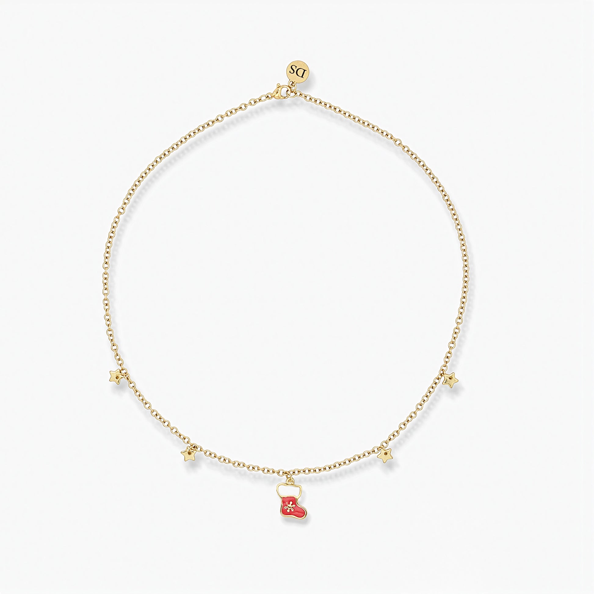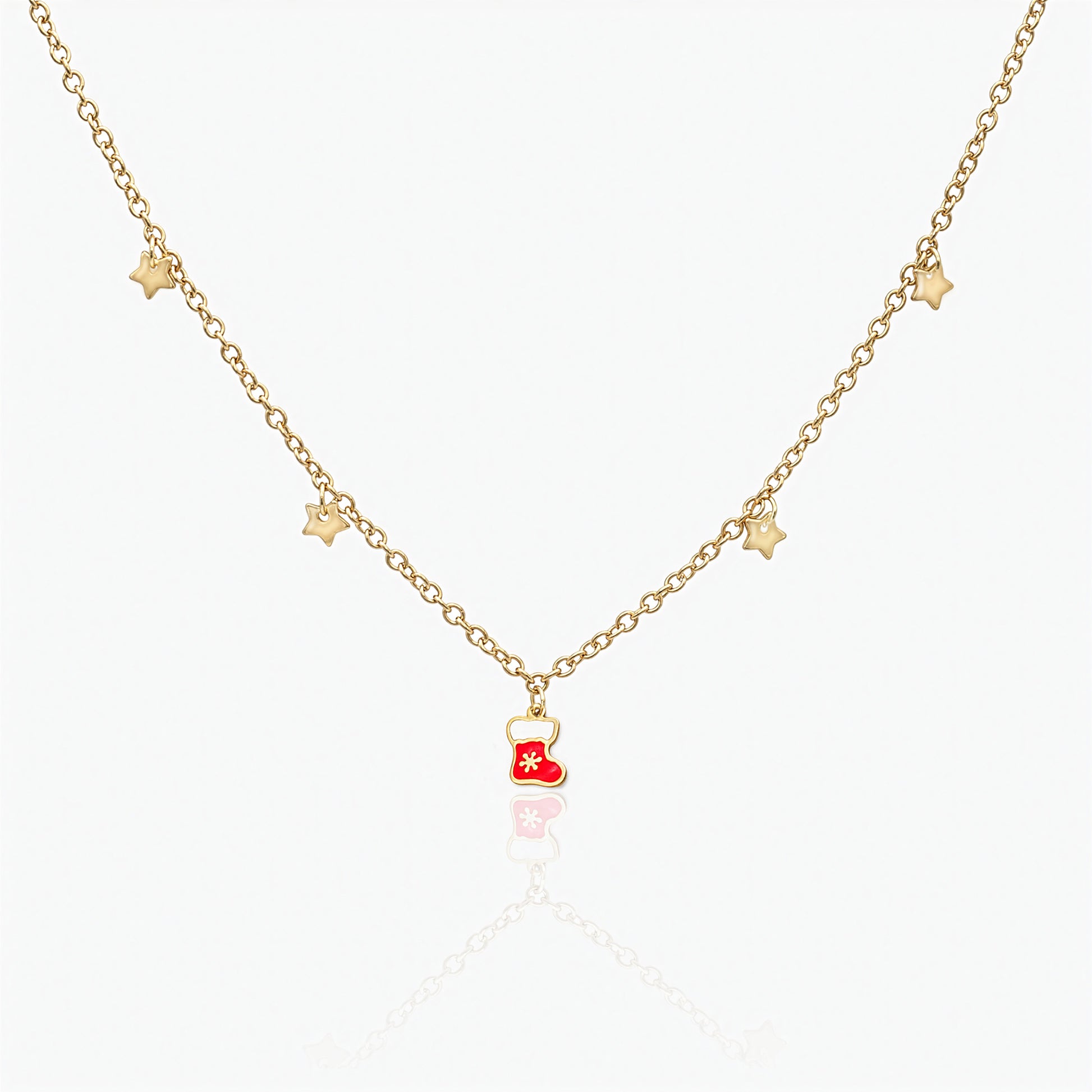 Women's Necklace with Christmas Stocking and Stars in 18K Gold Plated