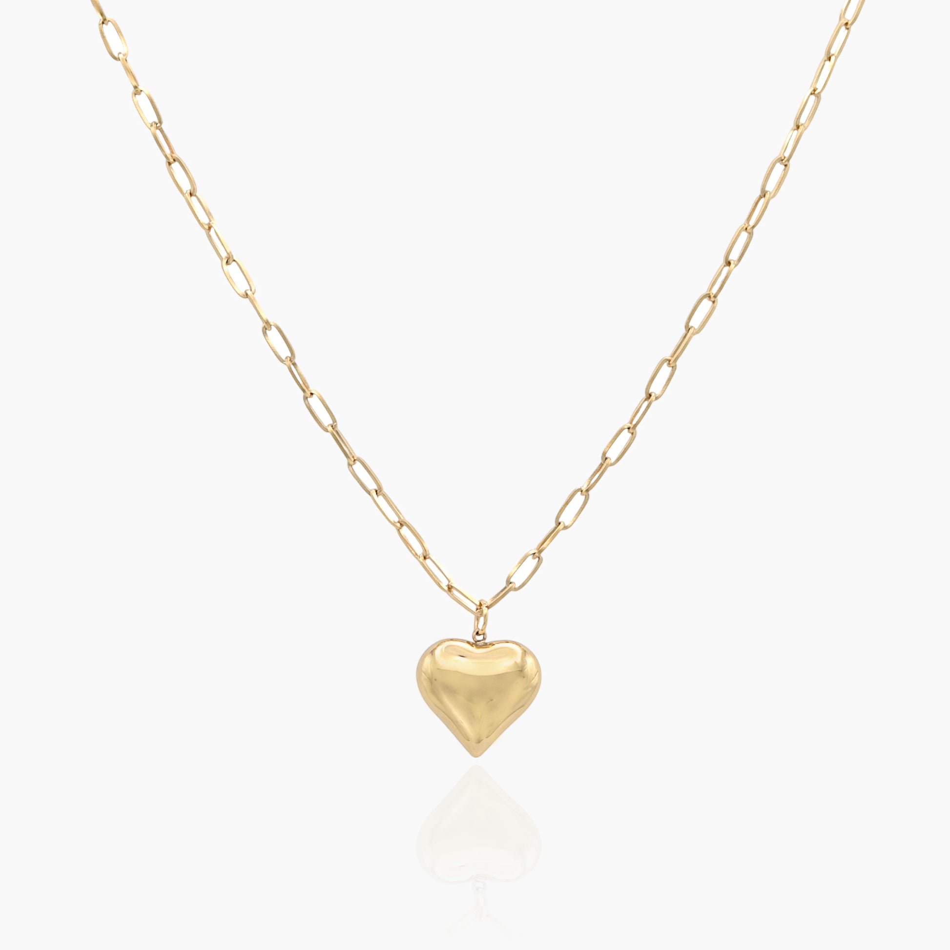 The DSCREAZIONI necklace with a 14K gold-plated heart charm exudes femininity and contemporary style. The paperclip link chain adds a touch of character, making it perfect for any occasion.