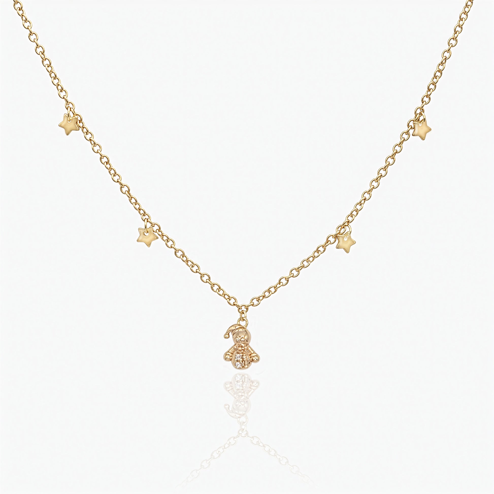 The DSCREAZIONI necklace with a snowman and star charm is an ode to the magic of the holidays. The set zirconia stones reflect the light brilliantly, adding elegance and originality to any outfit.