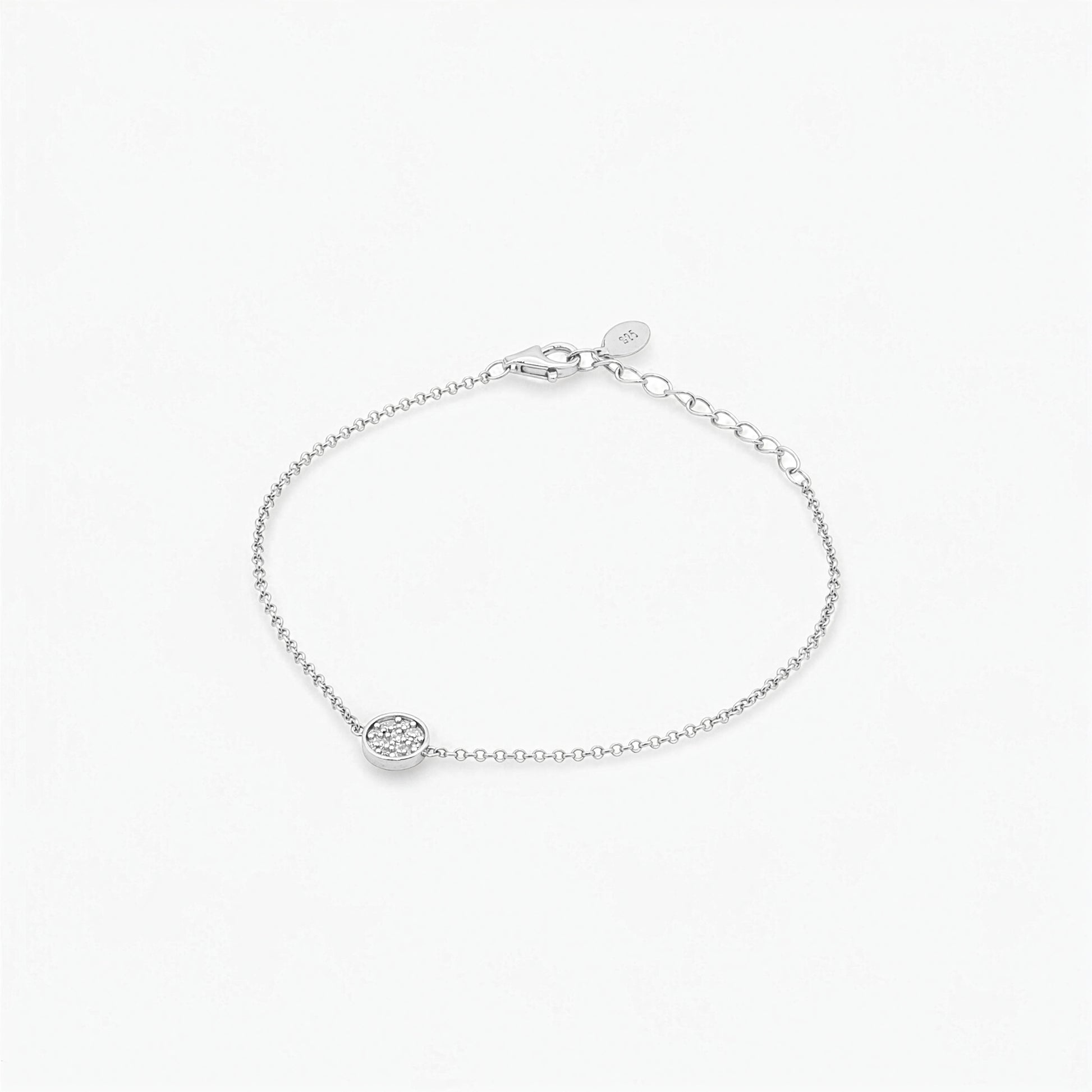 Bracciale da donna realizzato in argento sterling 925 con charm tondo punto luce in zircone. Un gioiello sottile e raffinato, perfetto per illuminare il polso con un tocco di luce elegante e sofisticata, ideale per ogni occasione.