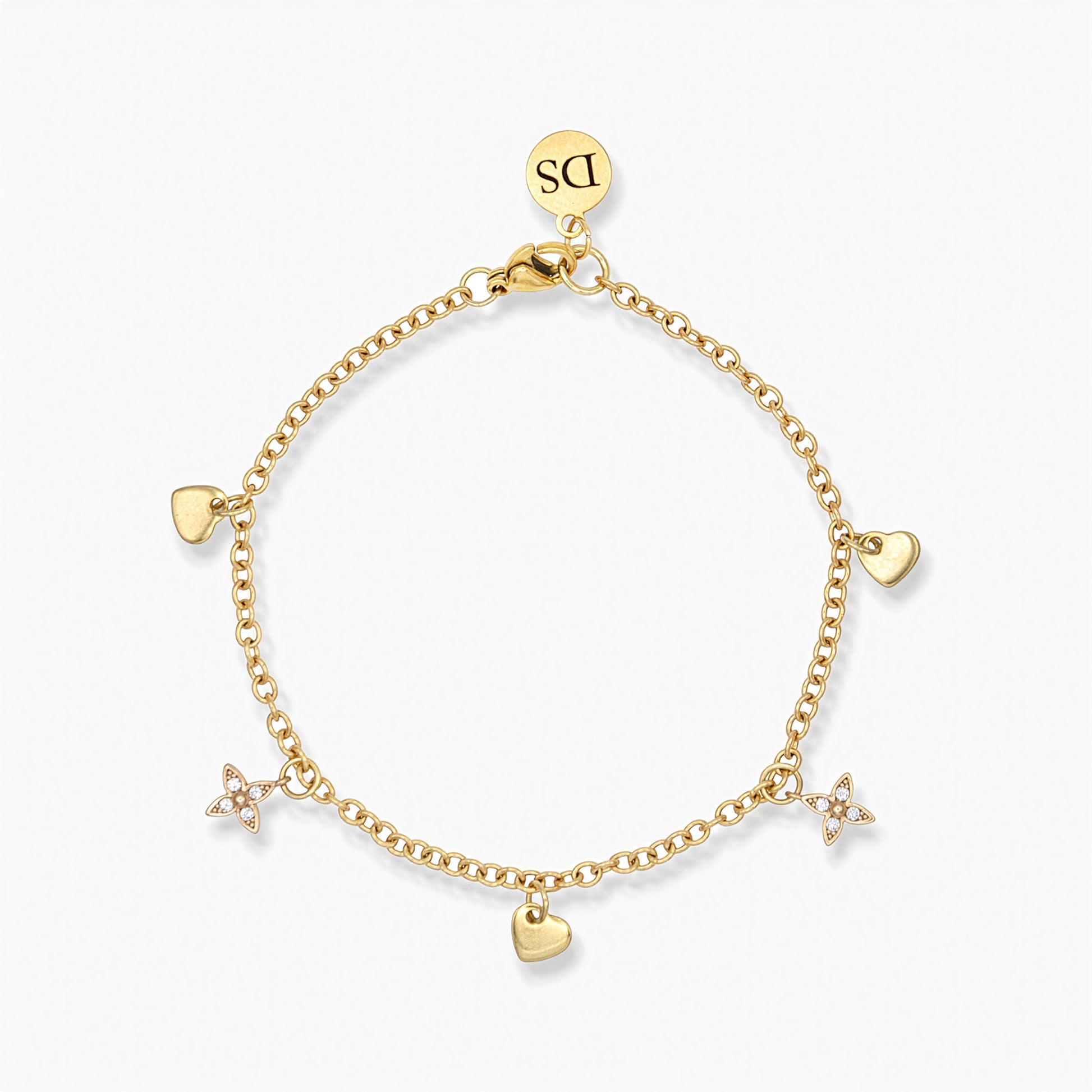 Bracciale Donna Placcato Oro 18k con Charms Cuori e Stelle