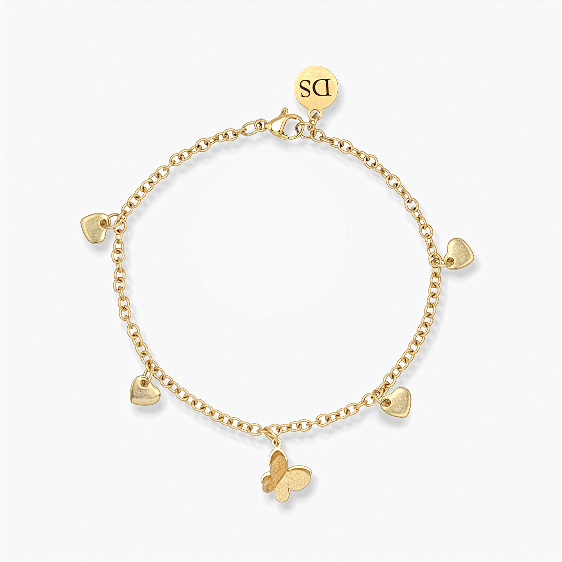 Bracciale Donna Placcato Oro 18k con Charms Farfalla e Cuore