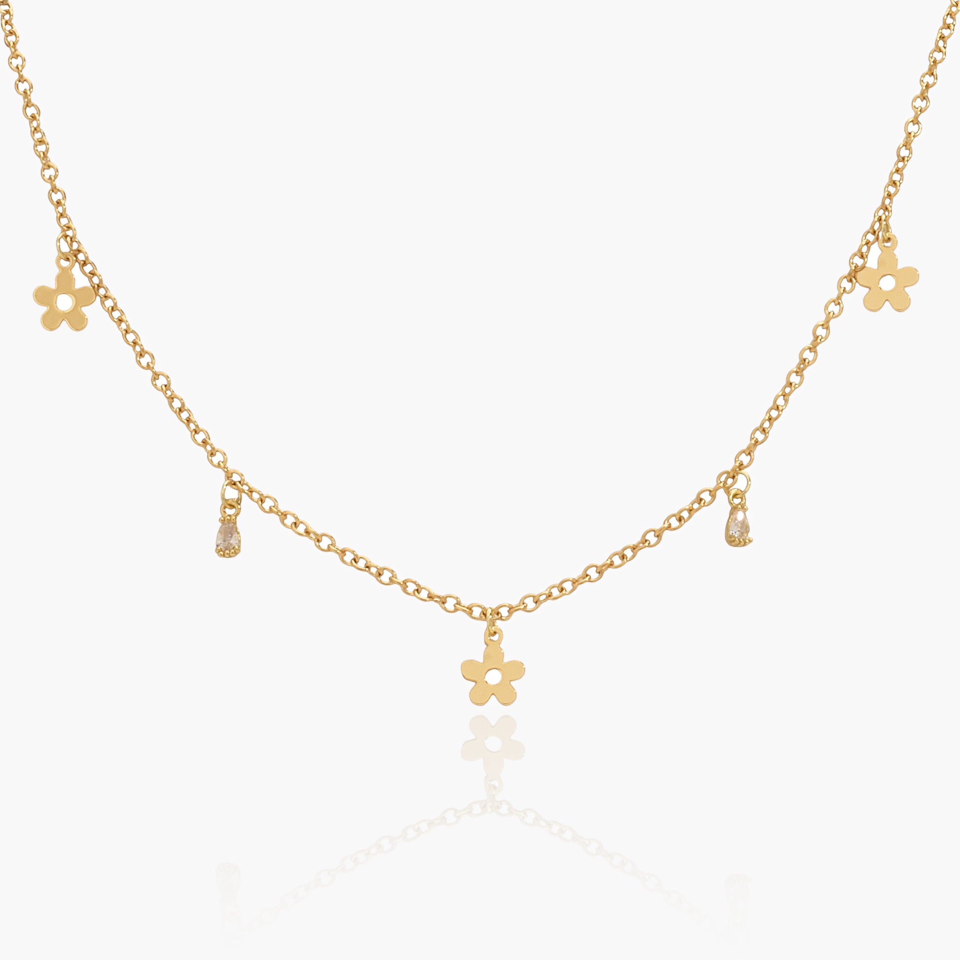 Collana Placcata Oro 18K con Pendenti Fiori e Zirconi a Goccia