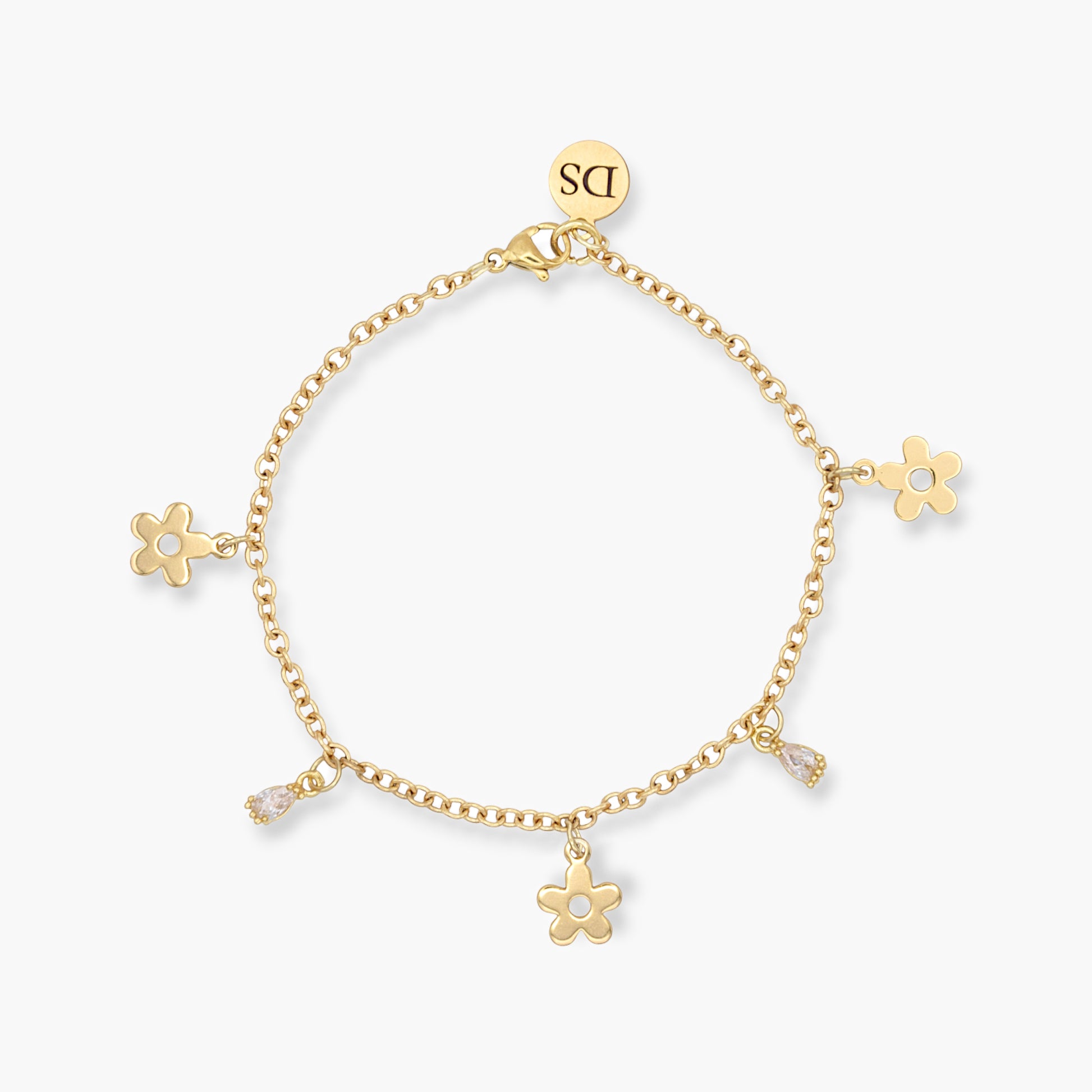 Bracciale Placcato Oro 18k con Charms Fiori e Zirconia Trasparente