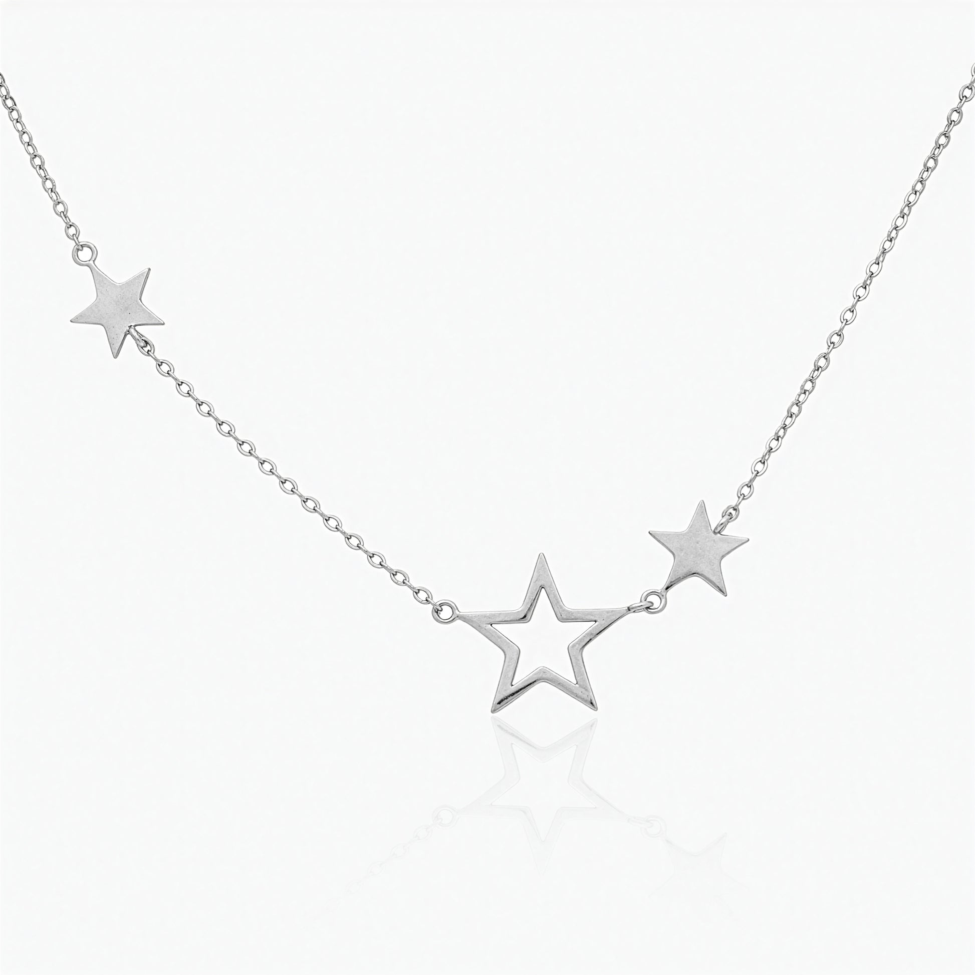 Questa collana in argento sterling 925 rodiato con stelle è il simbolo di una bellezza discreta e luminosa. Un gioiello versatile, pensato per accompagnare ogni momento con eleganza e stile, perfetto anche come regalo per Natale.