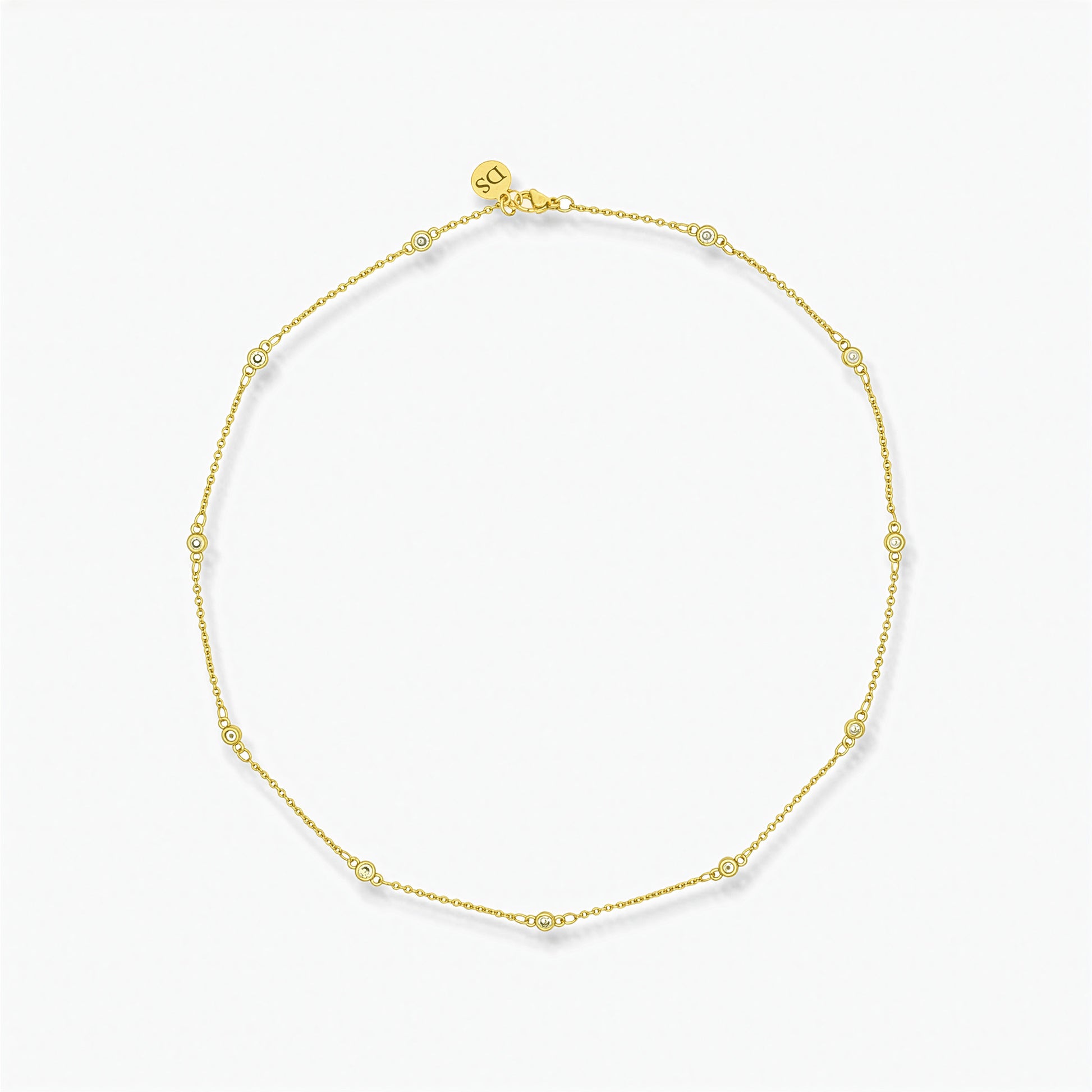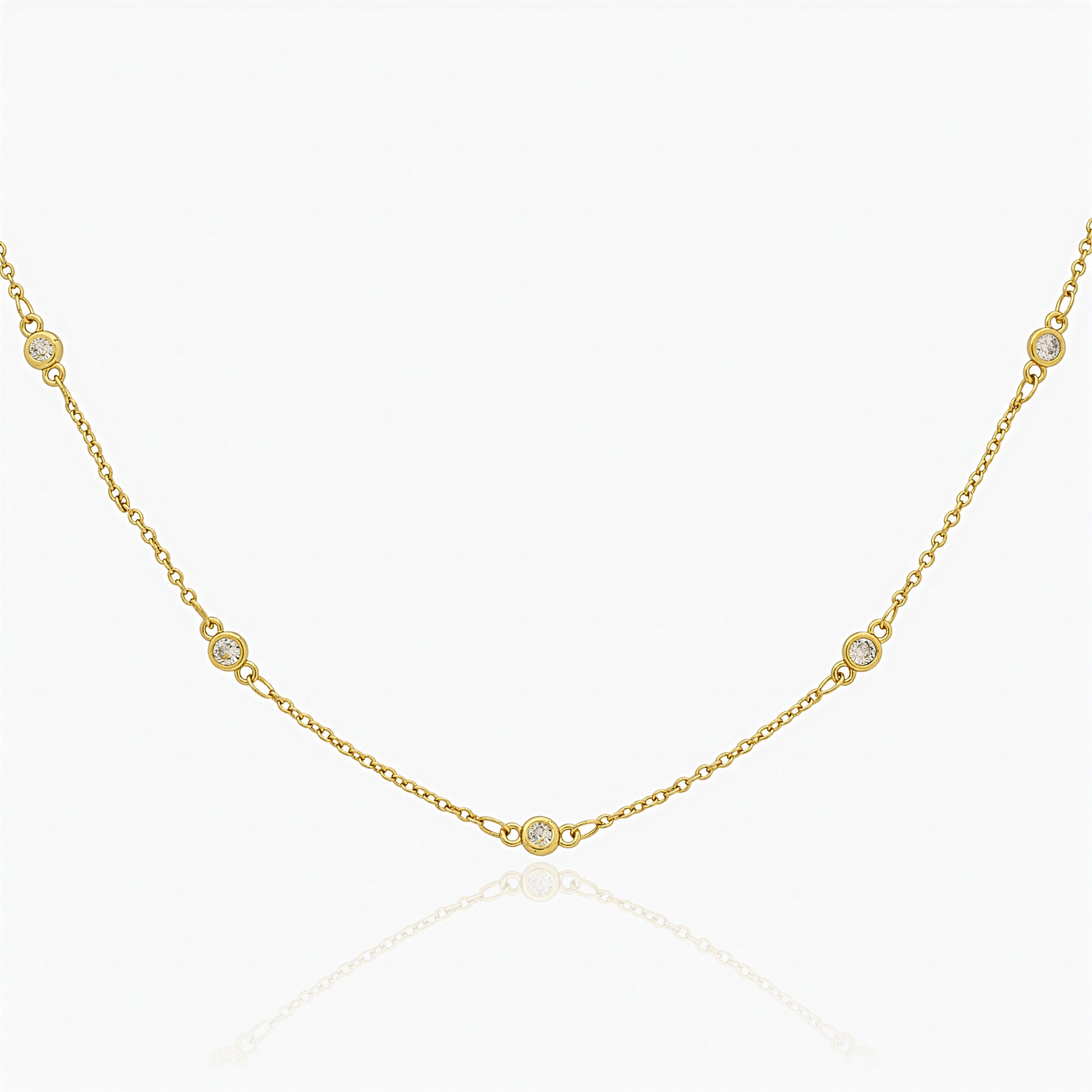 La collana combina la brillantezza dell’oro 18K con la luce naturale degli zirconi, esaltando la femminilità con un tocco di eleganza senza tempo. Perfetta da sola o abbinata al bracciale coordinato per un look sofisticato e armonioso.