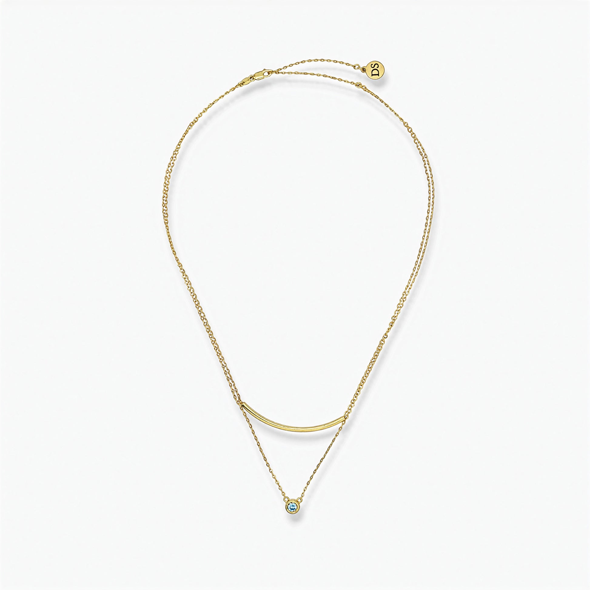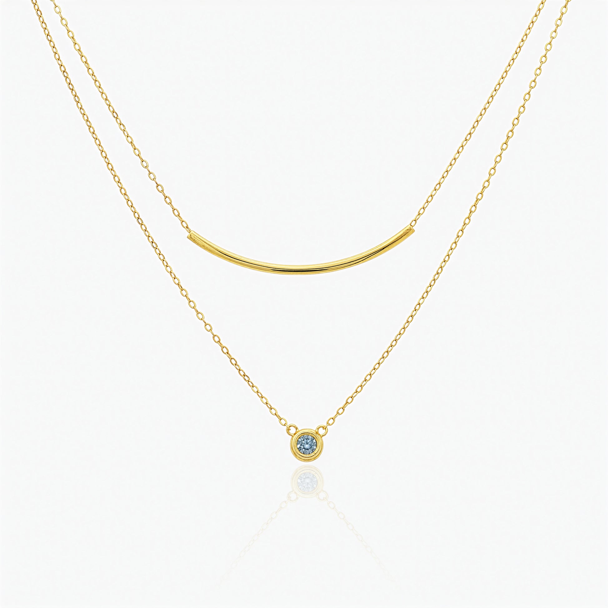 Collana donna in argento sterling 925 placcato oro, caratterizzata da una maglia sottile in stile layered che unisce eleganza e modernità. Il pendente centrale con zircone AAA blu cattura la luce con brillantezza, mentre la maglia curva dal design geometrico aggiunge un tocco contemporaneo e sofisticato. Un gioiello perfetto per chi ama i dettagli unici e raffinati.