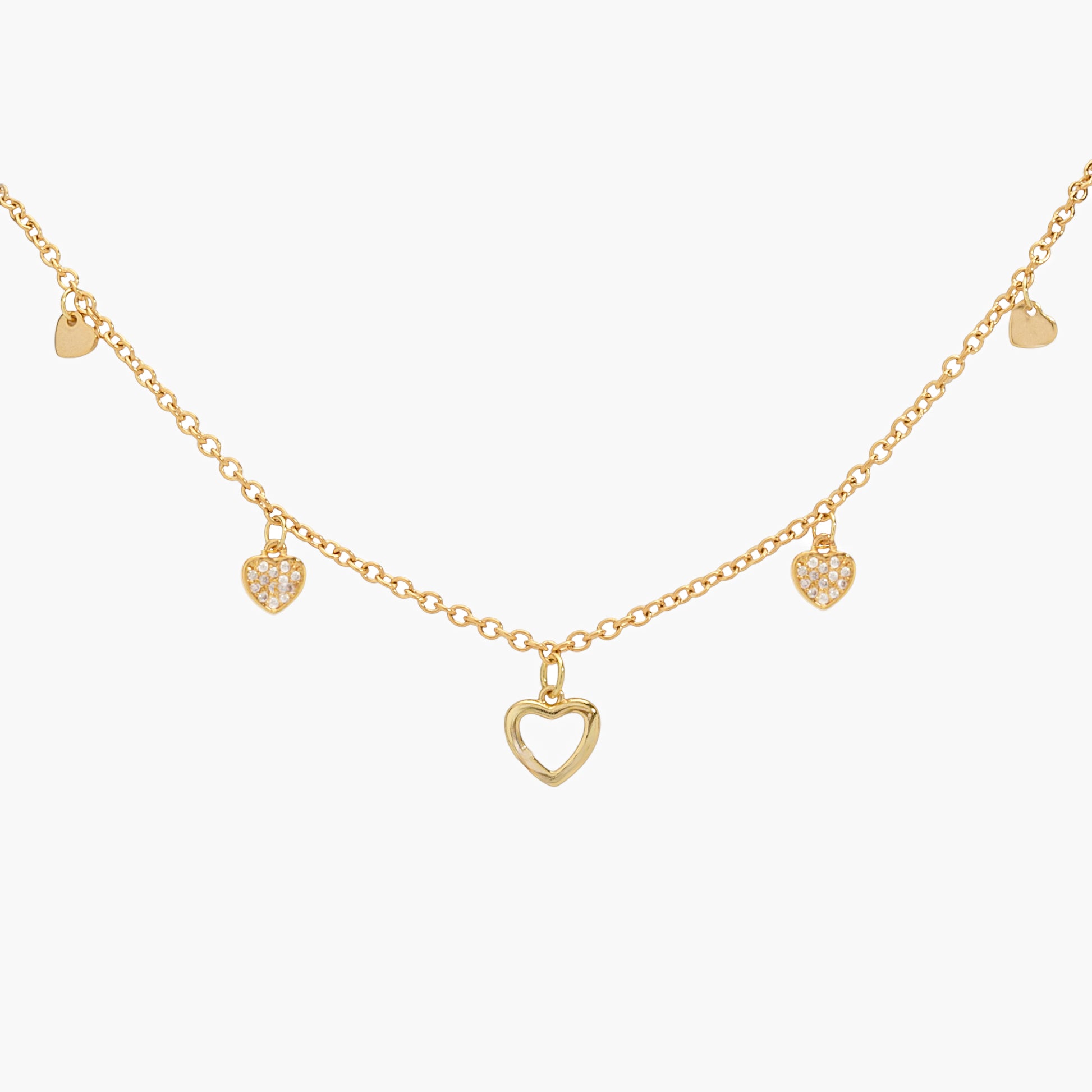 Collana Donna Placcata Oro 18K con Pendente Cuore e Charms Cuori con Zirconi