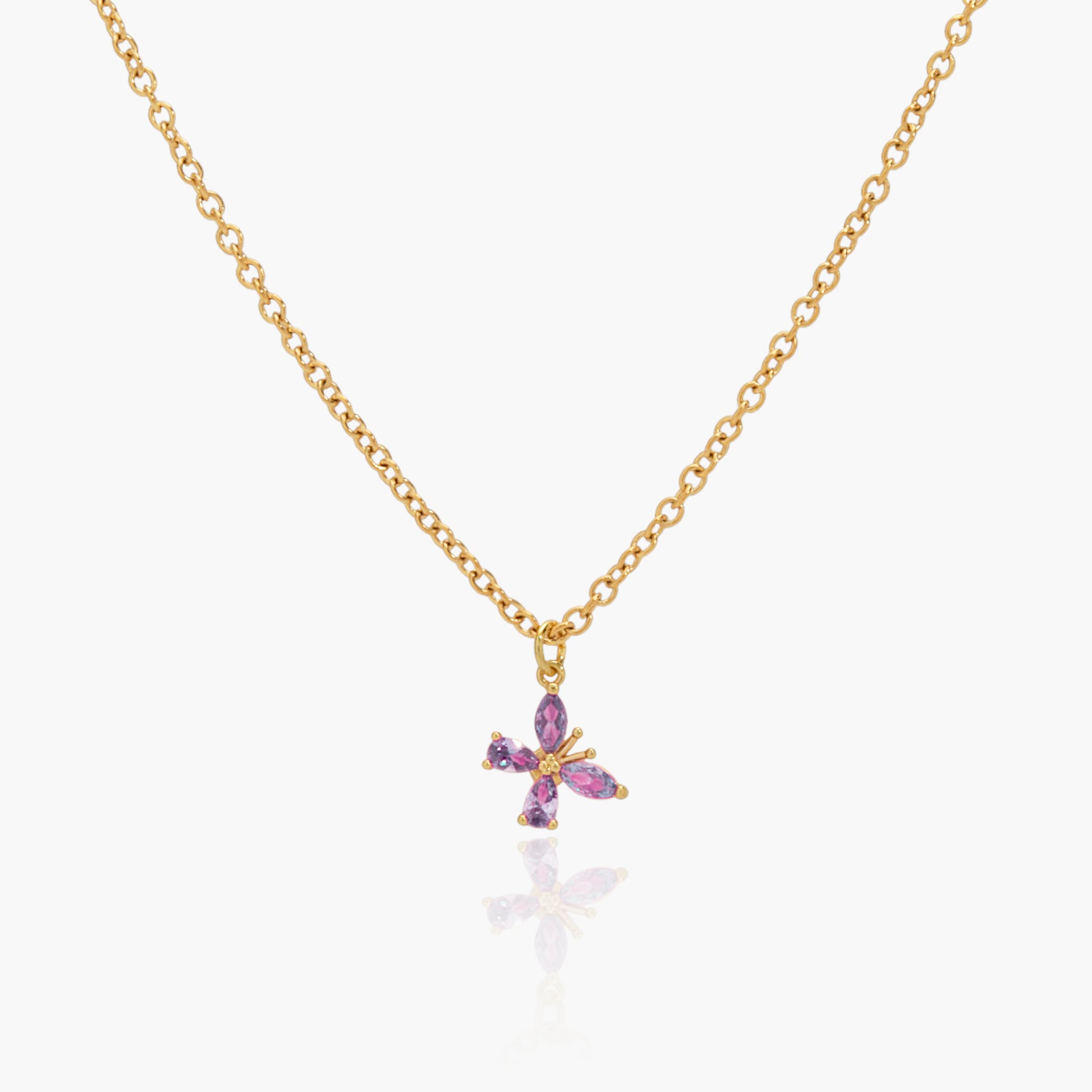 Collana Placcata Oro 18K con Pendente Farfalla e Zirconi Viola