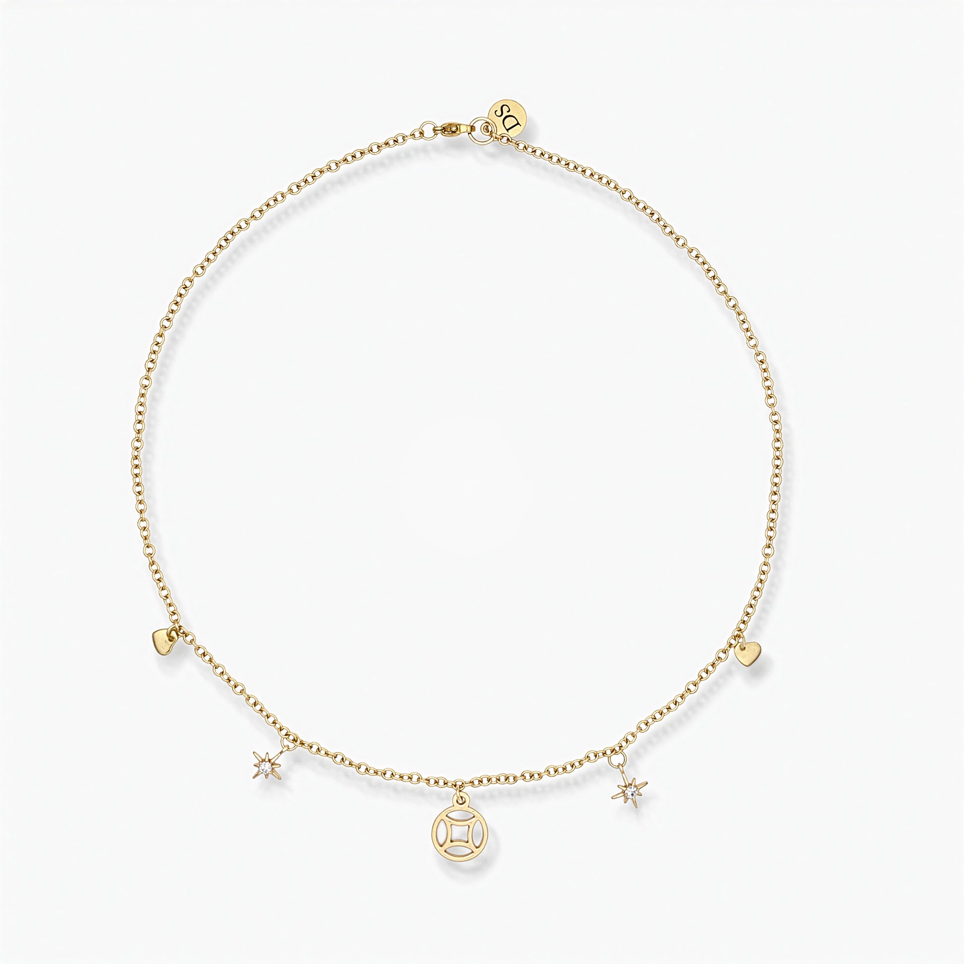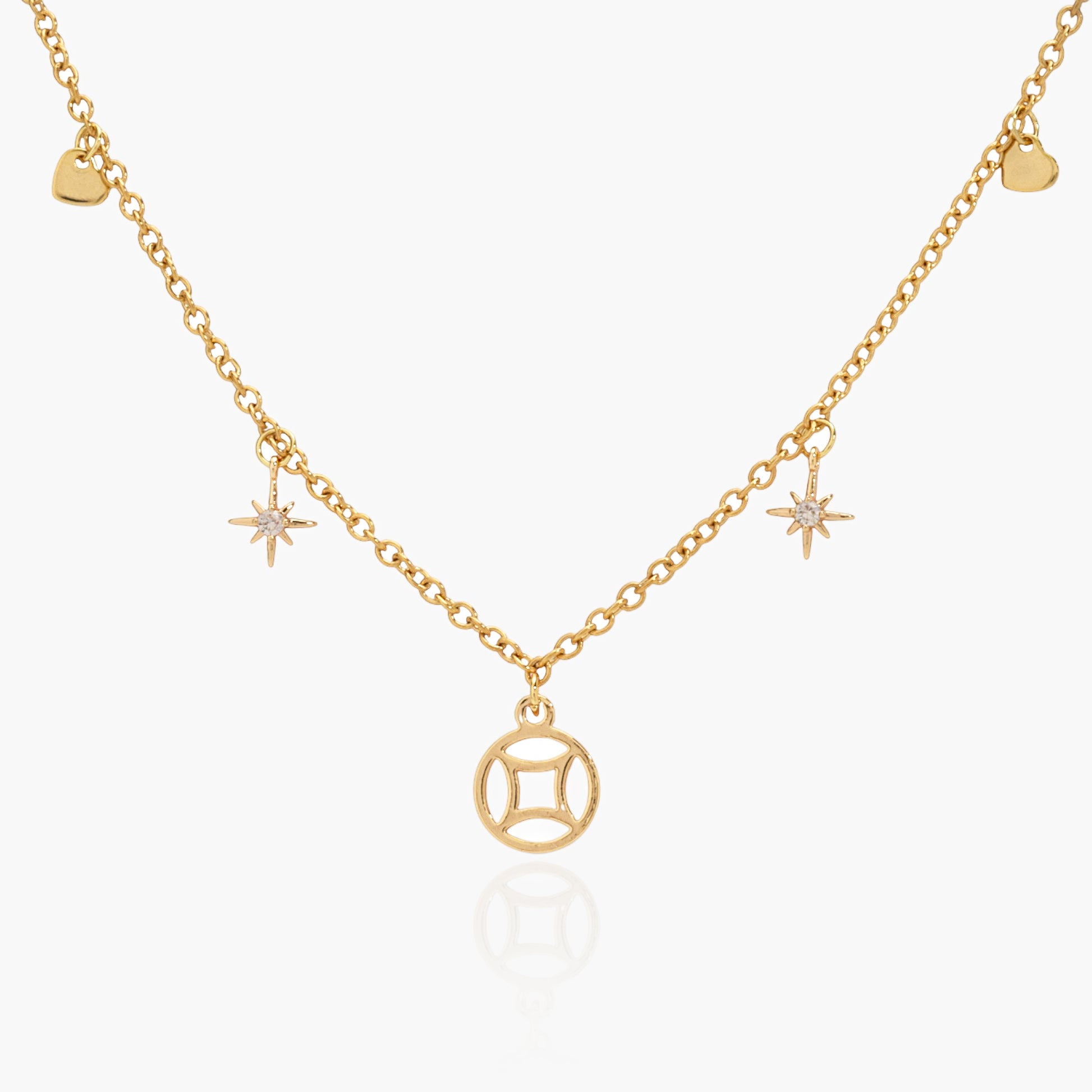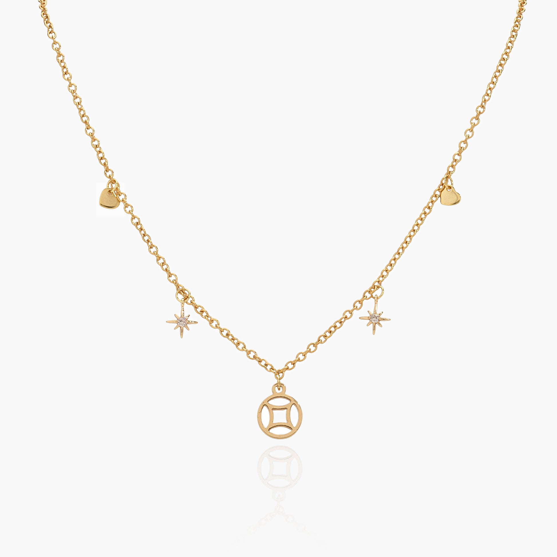 Collana Placcata Oro 18K con Pendente Geometrico, Rosa dei Venti e Cuori