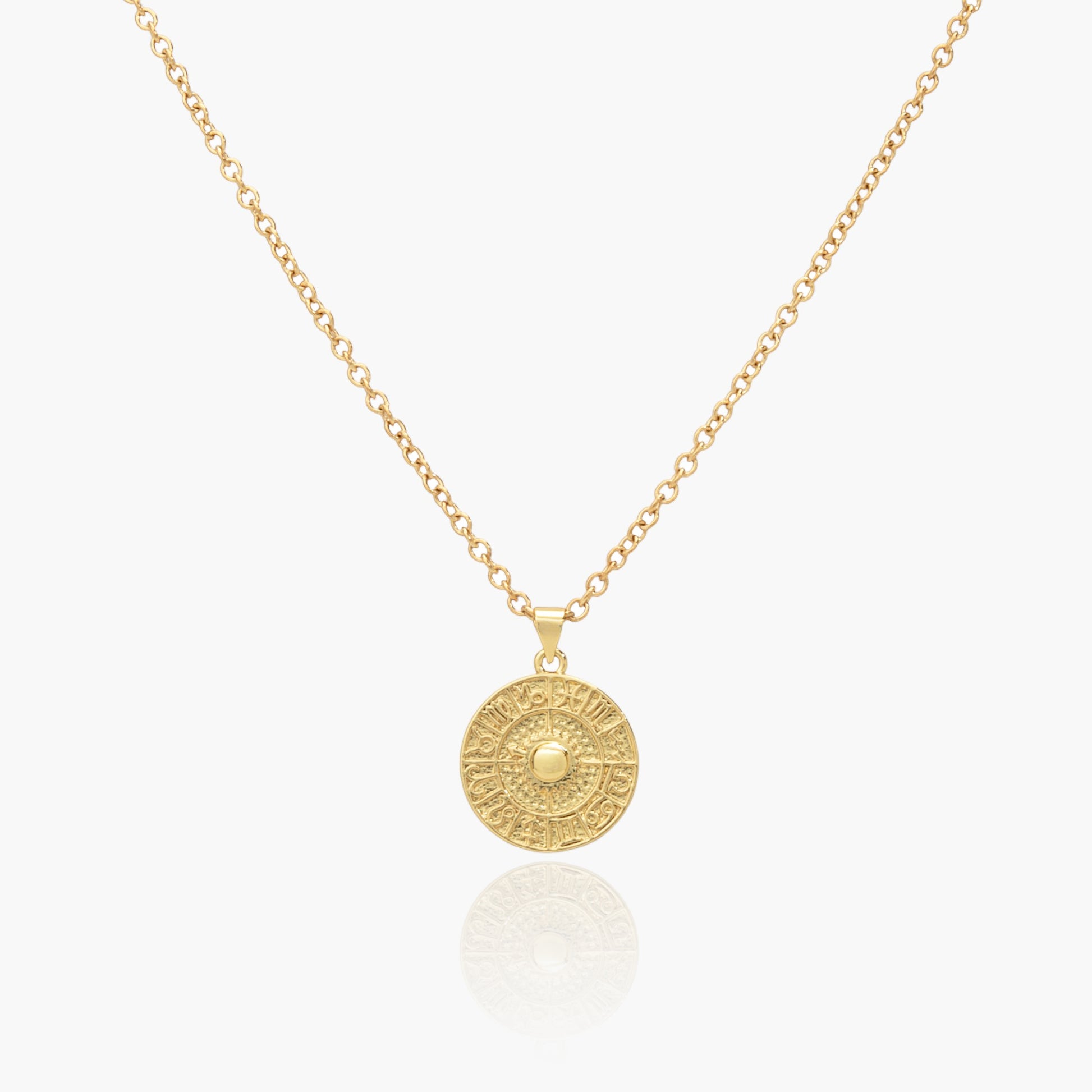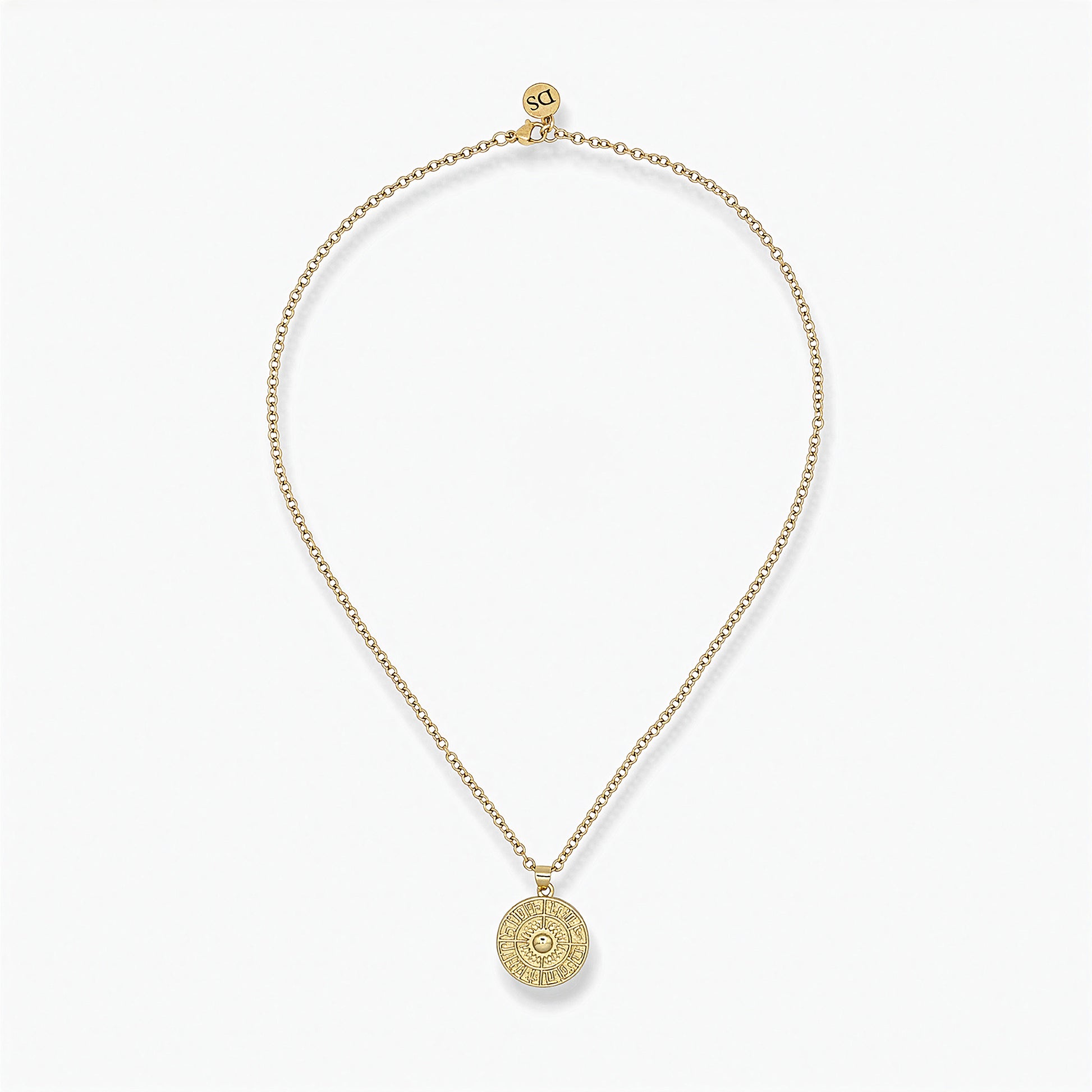 Questa collana placcata oro 18K con pendente a cerchio e segni zodiacali è il gioiello ideale per chi cerca un accessorio elegante, luminoso e personale, capace di valorizzare ogni outfit con stile e significato.