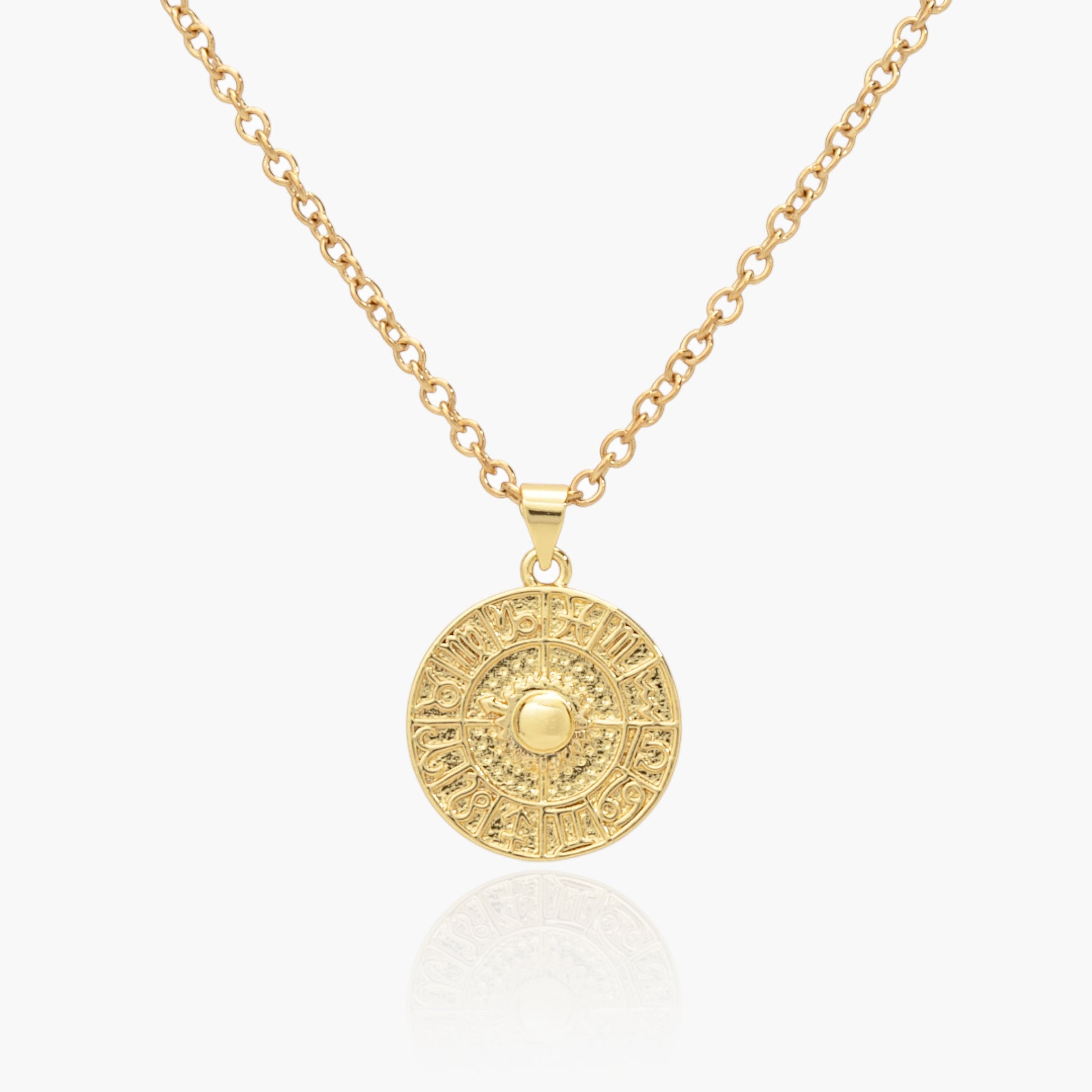 Collana Donna Placcata Oro 18K con Pendente Tondo e Segni Zodiacali